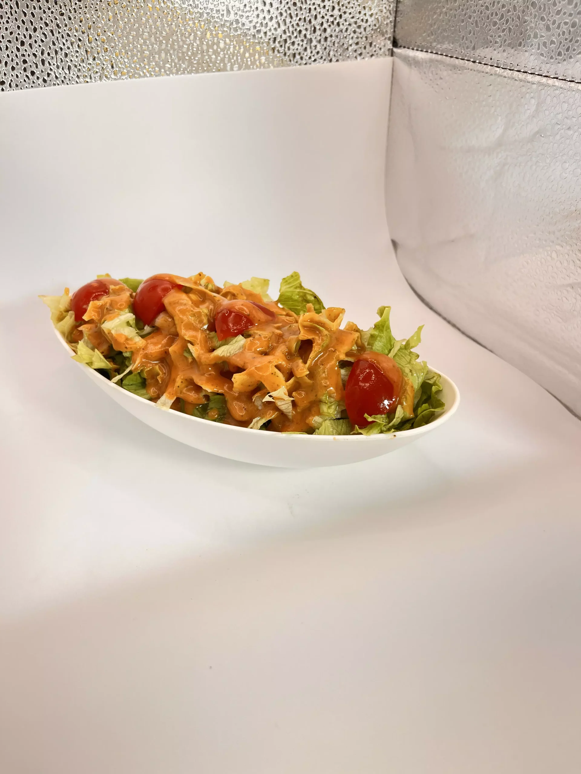 1 balde P, 2 molhos, 500g de arroz, 250g de batata ou polenta, salada de alface americana com tomate cereja e molho artesanal.