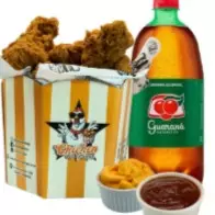 1 balde P, 2 molhos e 1 guaraná de 1 litro.