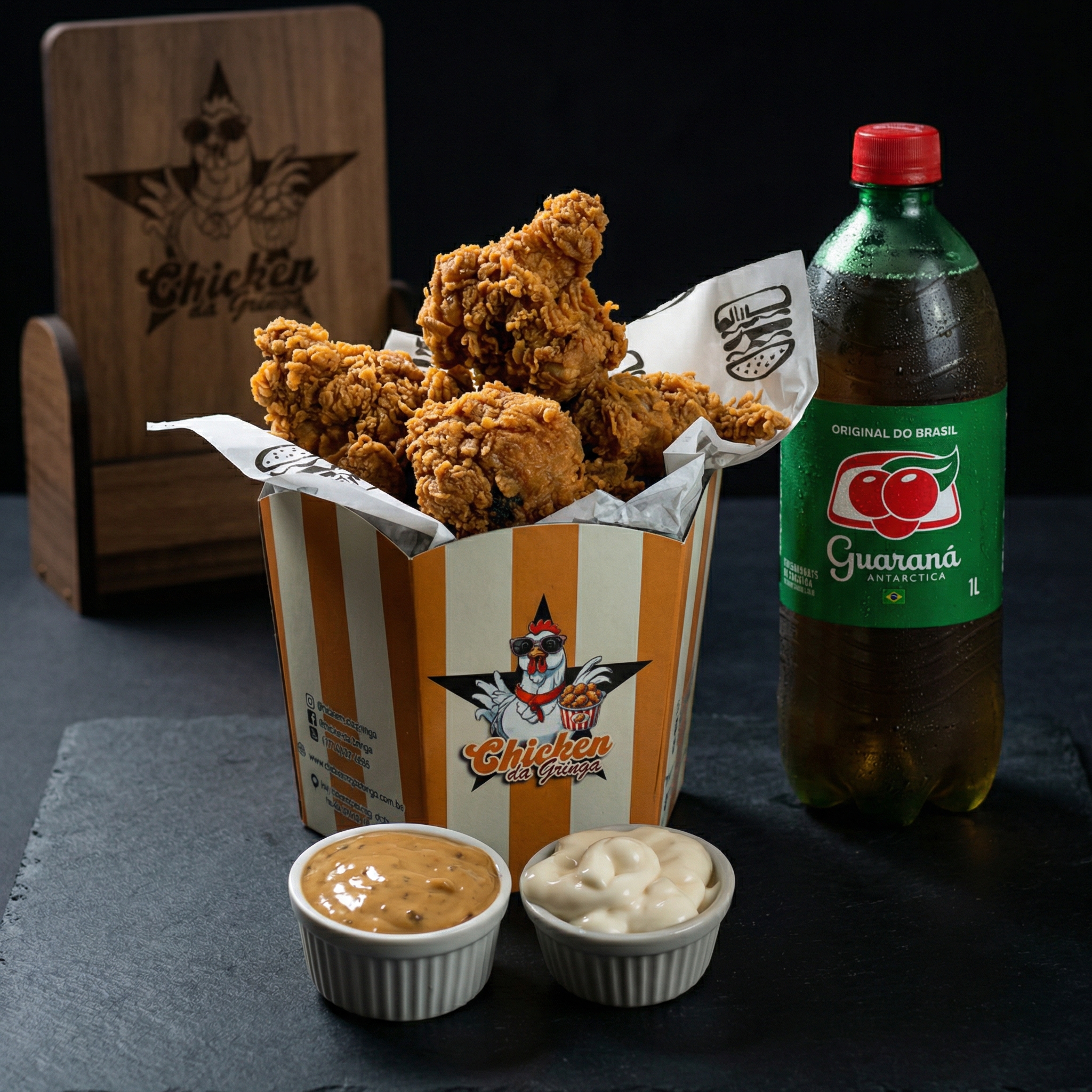 Assim nasceu o Chicken da Gringa — um frango frito muito gostoso, feito com ingredientes de qualidade e com fartura de verdade.